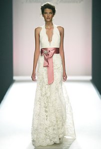 I spent my lunch hour today at New Natalie’s bridal boutique. I had a few photos with me but mostly I wanted to get a feel for what works for me…lace, v-necks and halters. A feel for what dosen’t work for me…trumpet skirts, mermaid shirts and tons of sparkles. A feel for the amount of cash I will have try not to shell out…the dresses I tried on hovered in the $1000 range.