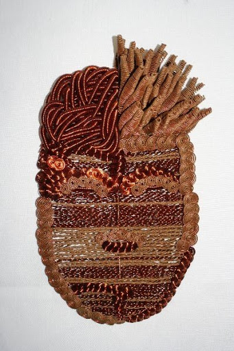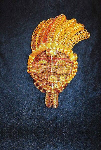 There was an amazing metalwork artist named G.M. Webb from Texas. He is self taught and twists copper and aluminum wire in to masks that are amazing. Here are two of his pieces. He has a great website with many other pieces. http://www.sculptorgmwebb.com/