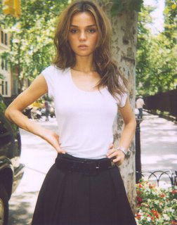 Allow me to be very highschoolish when I say that I do watch The City(God forgive me) and one of the people on the show needs to eat NOW!!! Allie Crandell is a model living in NYC who has worked for Diesel Jeans and works for One Model Management. She is rail thin. So thin in fact that when I see her in tank tops bones stick out that I didn’t even know were there. Her thigs are a mere suggestion of a body part. Most times she looks like a pissed off alien leading me to believe she is actually from another planet is about to eat her model boyfriend.