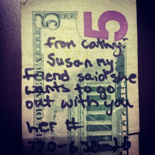 While making a purchase in the university bookstore I was given the bill pictured above back as change. I was watching the cashier the entire time so I know this note and number was not intended for me. It reminded me however of days gone by when I would have done something just as daring/stupid with my friends. I would like to add that we would not have sent that note via cash!! What the hell man? Is this girl made of money?