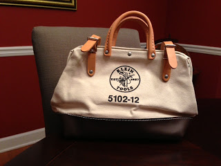 The Klein canvas tool bag. It took me a while to find one as the local hardware shops from Ace to Lowe’s did not carry them. Ebay has them in droves and the price is right! I snagged this 12 inch version for $36.00. They come as large as 24 inches but this one holds all of my things without the bottomless pit issues you get with larger bags. The look is similar to the $440 model, but it has the added bonus of having enough weight, thanks to the metal frame opening, to be used as a weapon if needed.