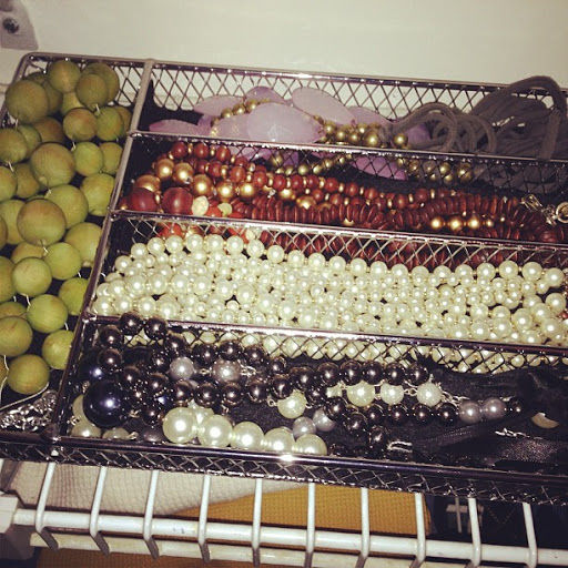 | I can now quickly find my necklaces. Yes these are silverware bins. |