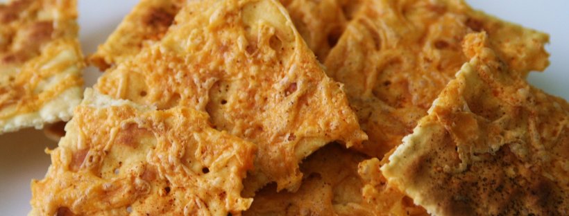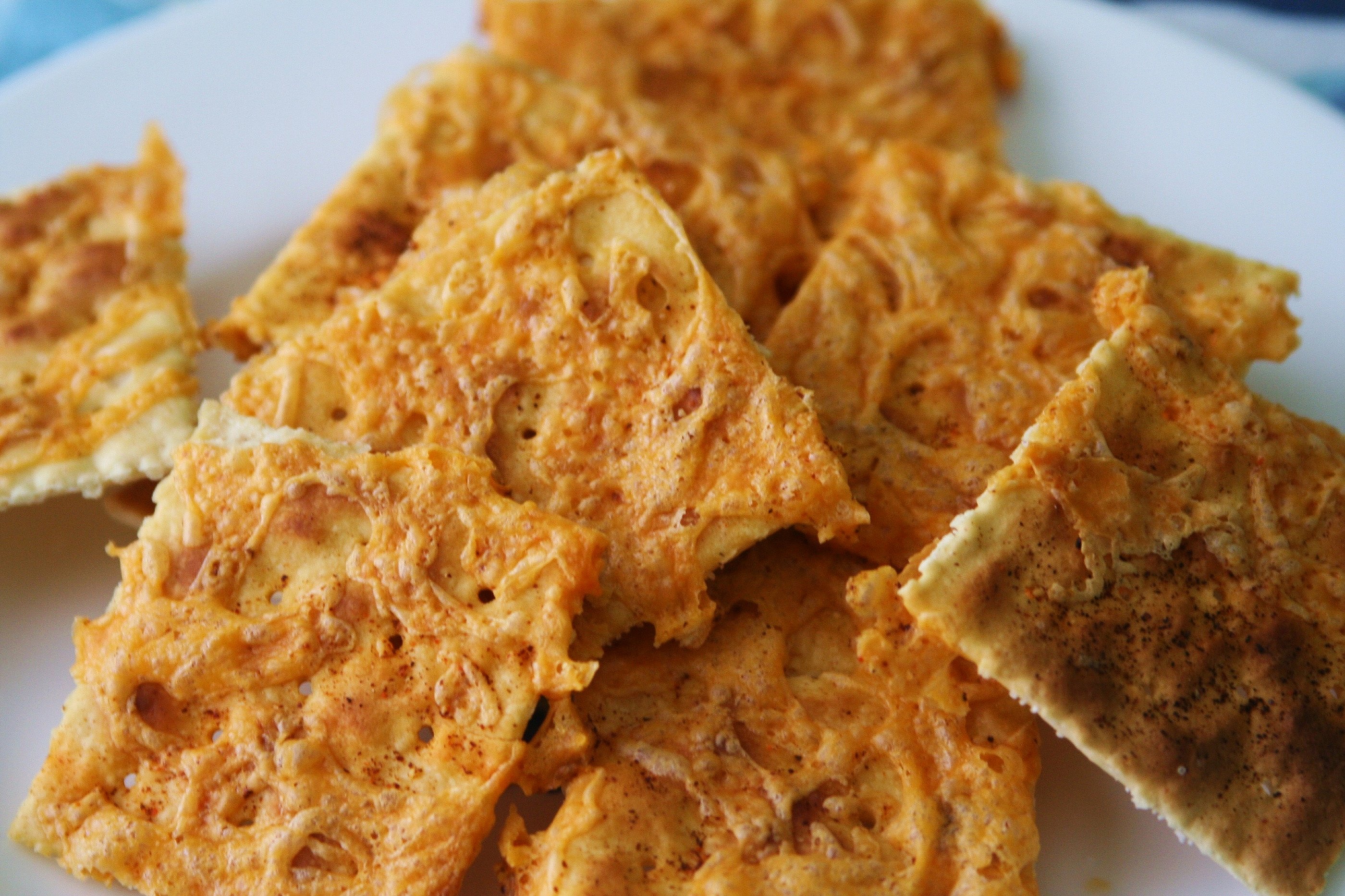 Saltines topped with cayenne pepper, and grated cheddar cheese. Then they are broiled to melt the cheese; then baked at the lowest temp the oven can get for about an hour to cook in the yumminess.