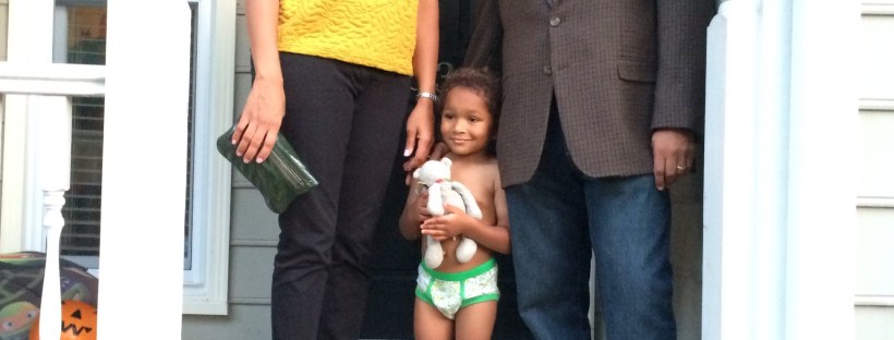 Aaron was in no mood for clothing and instead donned his new Teenage Mutant Ninja Turtle underwear for this photograph.