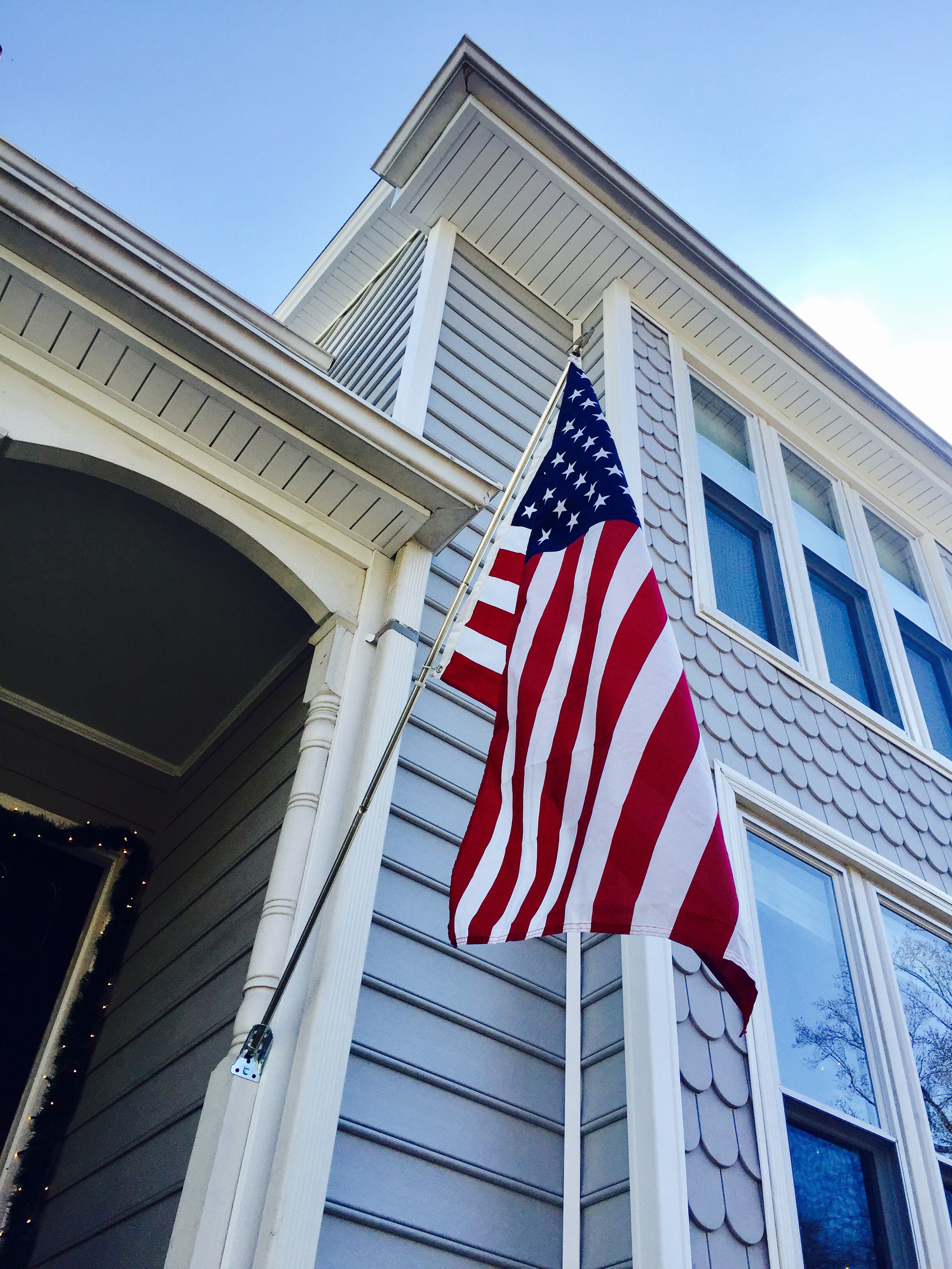 When the time comes he will learn why people will sometimes  fly the flag upside down. Or why some people will burn it and how it is their right to do so if they choose. As his parents we have those conversations now. Those are some heavy discussions; and we think they will be made a wee bit lighter with the knowledge of what good  can be found in those stars and stripes. Call me a tree hugging optimist but I know this country has more than a few things going for it. They are why we live here. They are why we gave birth to him here. They are what we work hard for and champion every day.  They are why this flag flies outside of our front door.