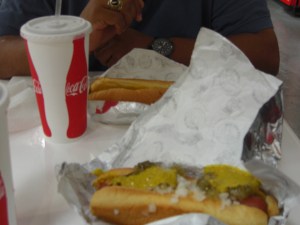 Here was our first meal as an engaged couple. These are hotdogs from Costco. Very tasty.
